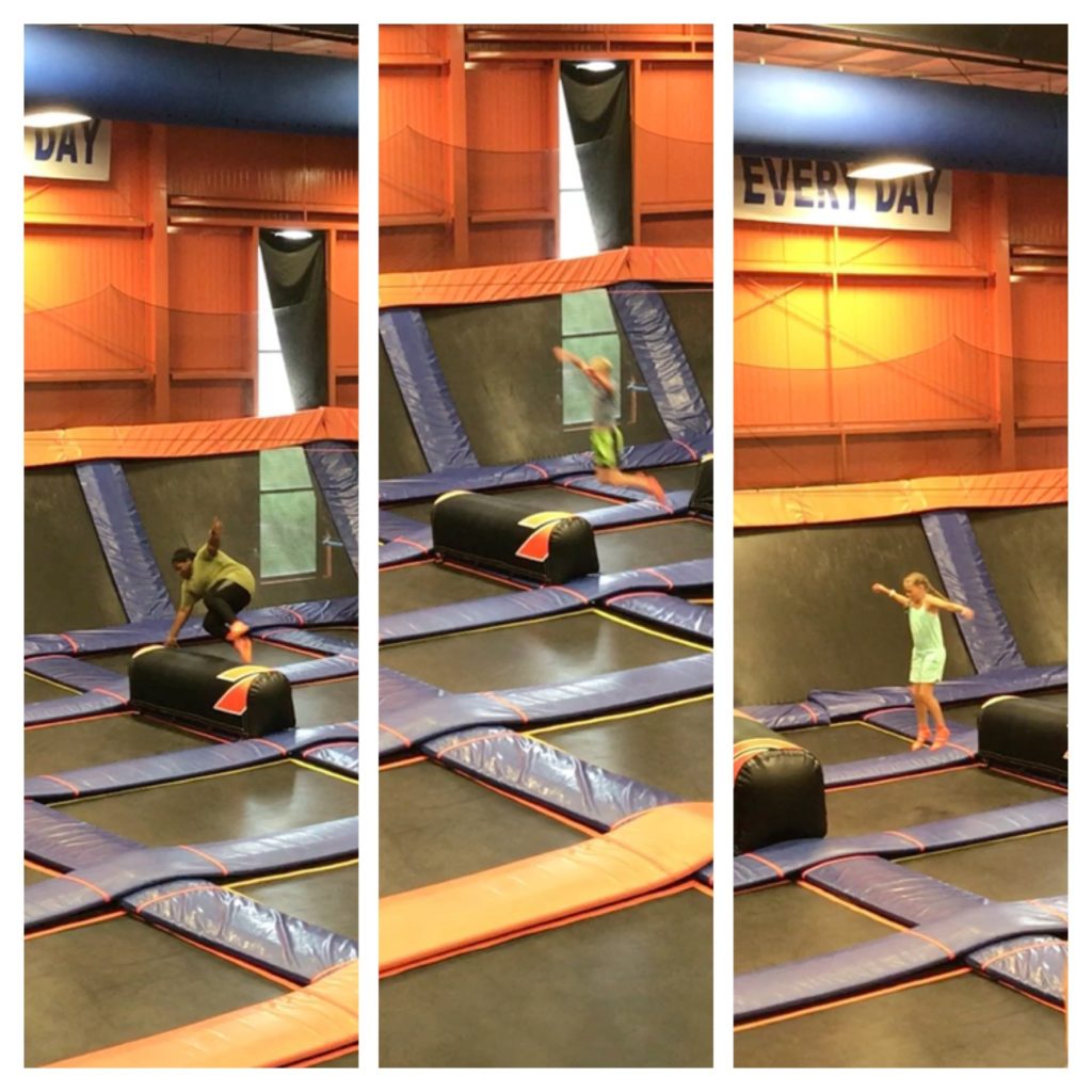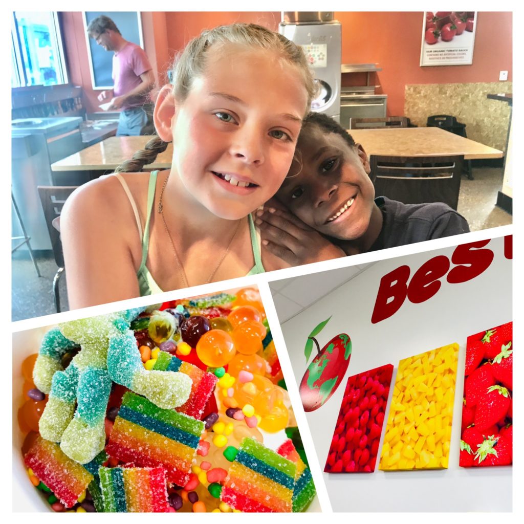 We brought her presents, we got her pizza, we found a rice krispy treat, a frozen yogurt shop where the toppings were beyond ridiculously plentiful, and then headed to the trampoline park.