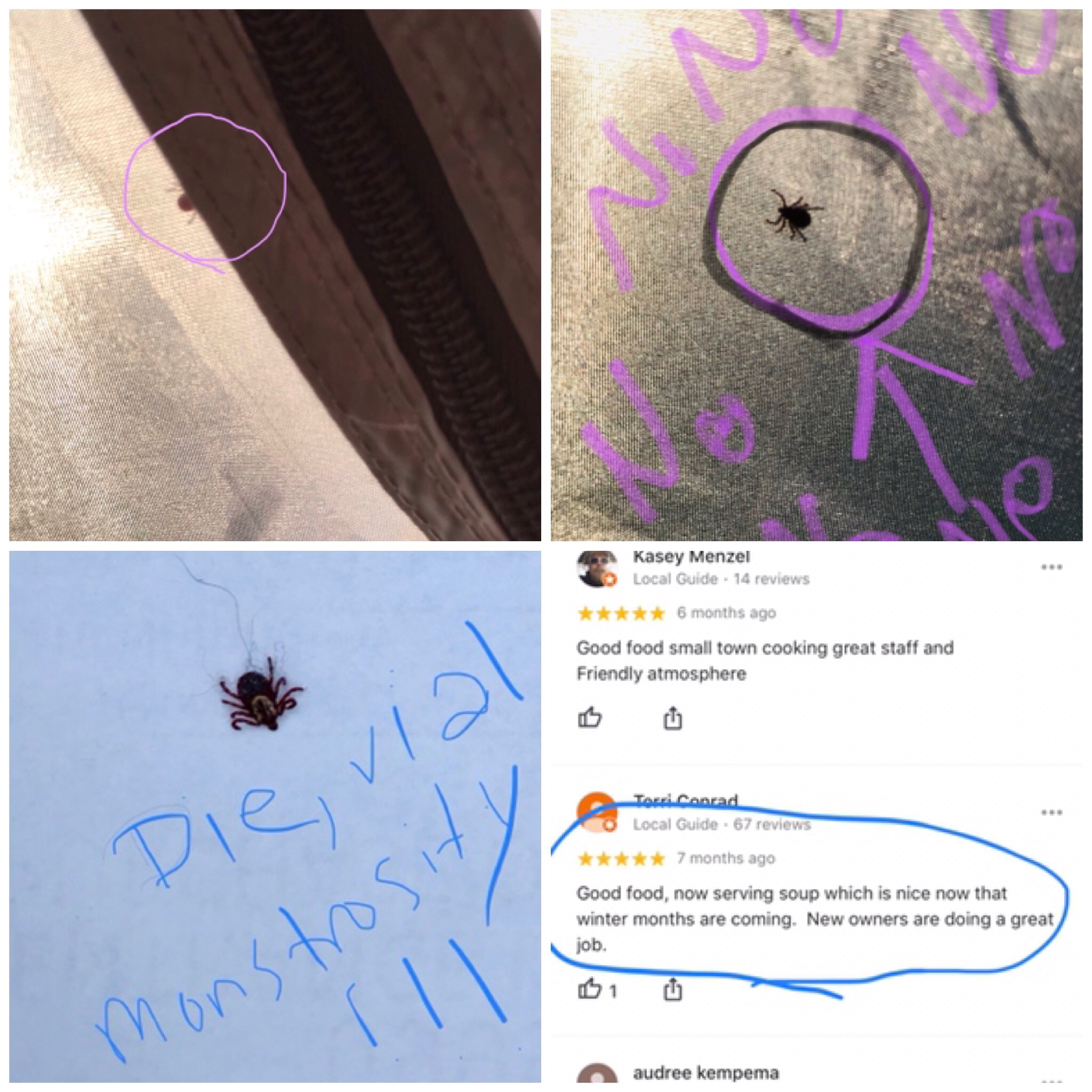 Ticks. All over the tent. I’m going to kill myself. I hear the kids outside, “Mom, there are ticks on us!” Did we die and go to hell? That’s so unlikely, but what other explanation can there be for this? I hit the tick off the tent, 3 more crawl up. The kids are yelling that they can’t keep ticks off of them. I bravely venture forth to rescue my children. Maybe I should just run to the car and leave EVERYTHING here, kids and all? I hate ticks. The tent is covered with them. They haven’t figured out that we are no longer in there. Blood thirsty little demons. They are crawling up my legs and I cant stomp them off fast enough. I decided not to abandon the kids, and i yell to them to get the bedding and shake it out as well as they can. The ticks have burrowed into our fuzzy blankets! I might have said a few sailor-type words, called those things appropriate names. We picked out all the ticks we could see, smashed everything but the tent into the car, meticulous organization be damned, and I threw the kids into their seats. We were all safely in the car, away from those vial offenders. Except the tent….that is our house. There isn’t a place to buy another except for hours out of our way. I dashed back to the tent to save our dwelling. I figured I could tie it to the top of the car and let the ticks fly off all over the highway. It would serve them right! I got to the tent, my legt covered in ticks, saw the tent covered in ticks, brushed my legs clean, and slid to safety inside, zipper shut. Now for knocking all these ticks off. Except they had decided it would be an excellent idea to crawl into the stitching of the netting and get as stuck as possible. These little dudes were out for blood in a big way. To hell with it. Captain is abandoning ship. I know when I’m beat. They can have that tent if they want it so badly!
