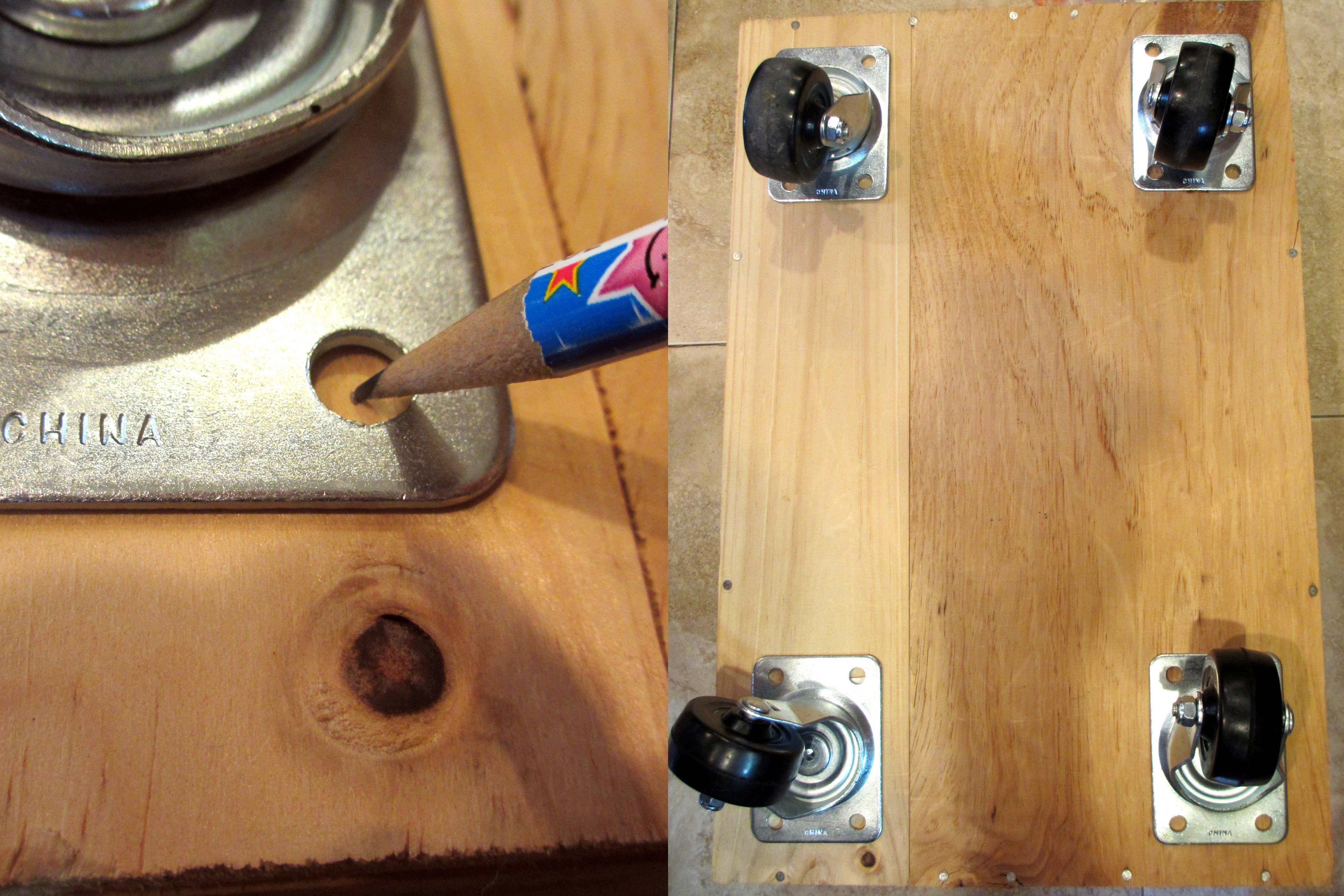 2. 4 wheels: I purchased the 2″, non-locking, 100lb, 360 degree rotating wheels, but there are many kinds to choose from. Just make sure it has a flat plate with 4 screw holes for assembly rather than a post. I purchased the larger wheels because we have carpet in the house and I wanted something that could handle it. I also have a big 7-year-old who I knew would want to play in the wagon, so I needed something that could handle her weight-wise! Each wheel cost about $5.