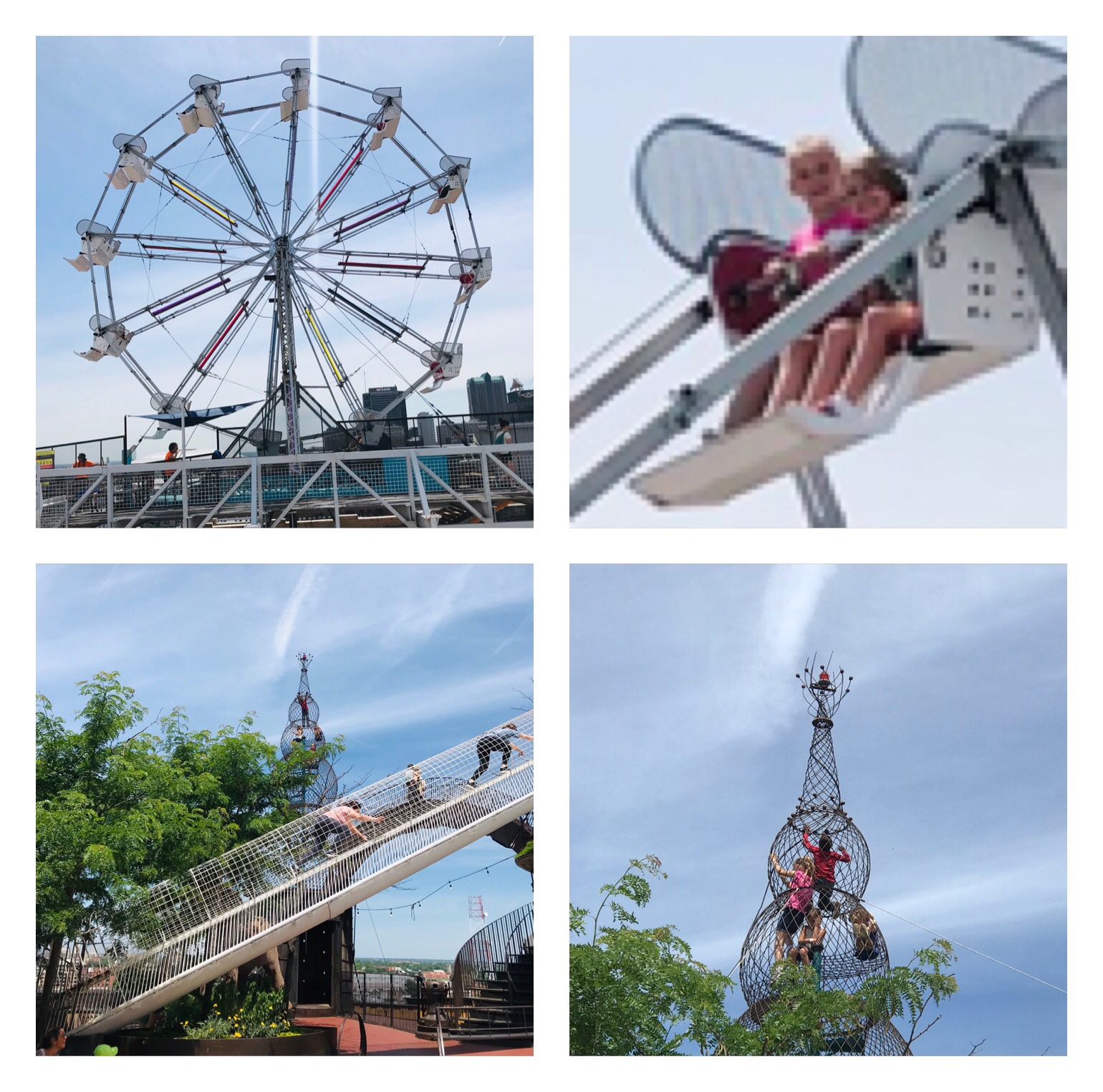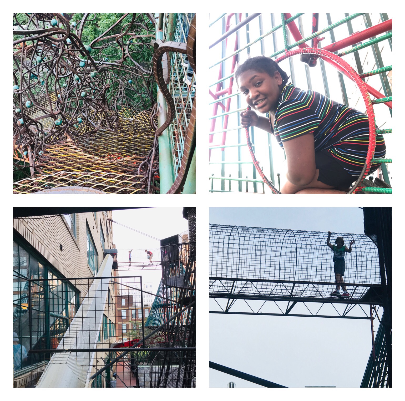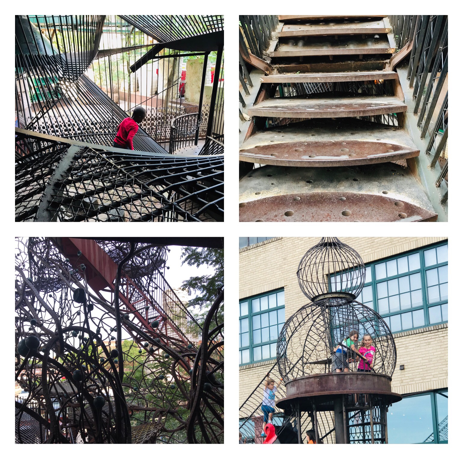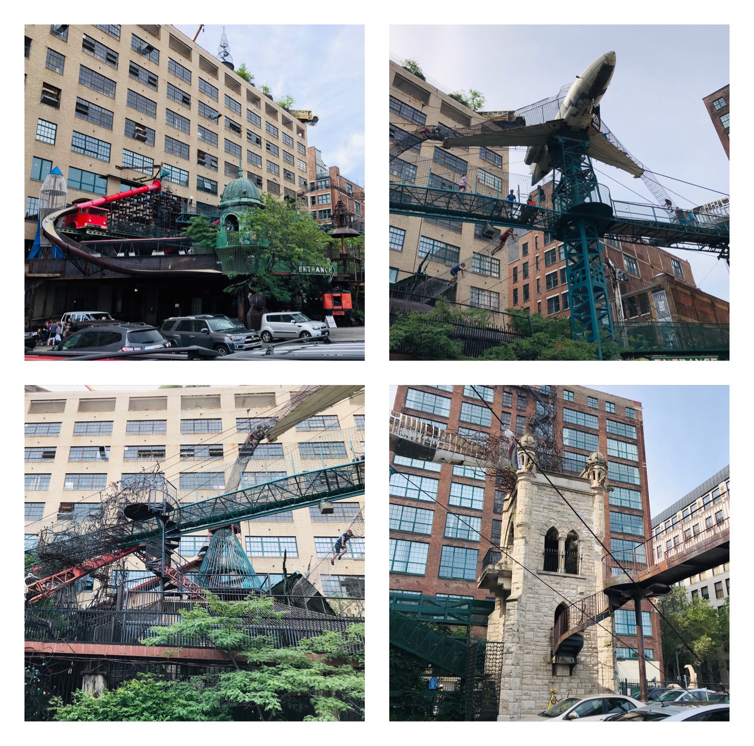 Several years ago, you casually mentioned that a place exists where free range kids can climb old city rubble to the top of a building, hang off the top of the building on a school bus, slide down an 11-story slide, and its all made from recycled junk. I mean, seriously, that’s too good to be true, but we thought we’d peek in if ever we were in St. Louis.