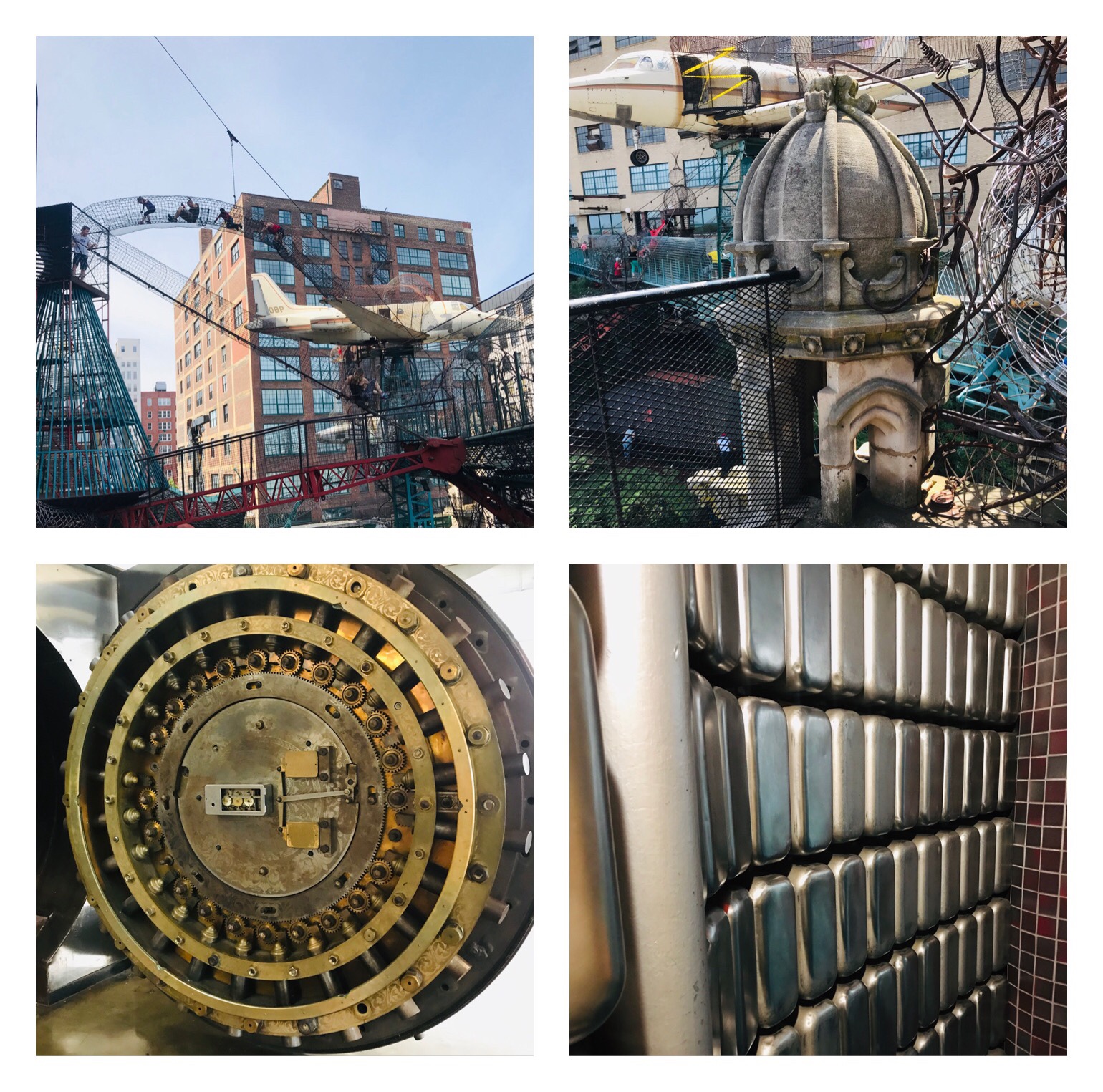 Nathan, I can imagine you building this. All those bank vault doors, that wire mesh leftover from the foundations of the city, bread pans from mass baking of bread to feed the city, those stone buttresses…just toss them all high into the air for the brave and adventurous to climb through. I imagine the builder walking down the street after the fair and realizing that this ferris wheel had more than one last ride left in it. He crowned his entire creation with its commonness, hoping it would raise children to the heavens in their joy or allow that one corner of space where tired parents could steal a quiet moment and a kiss. He succeeded.