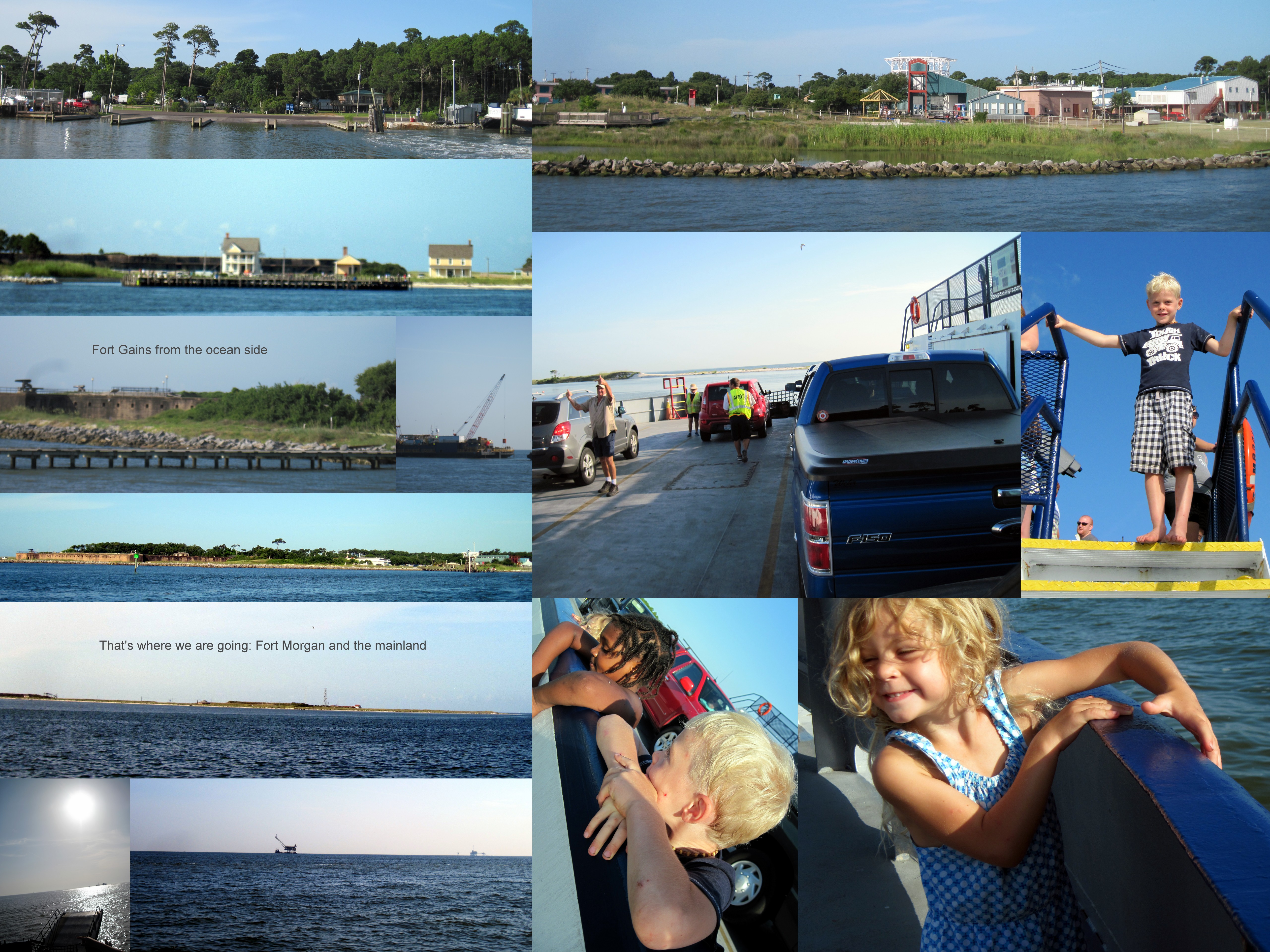 Instead of taking the bridge back to the land, we decided to take the ferry over to the peninsula and peek at Fort Morgan as we drove past. This decision put us behind schedule about an hour, but as I planned on getting to Richmond to pick up Brandon with an hour to spare, I figured we would be okay, and only a little late, and so would have the best of all worlds.