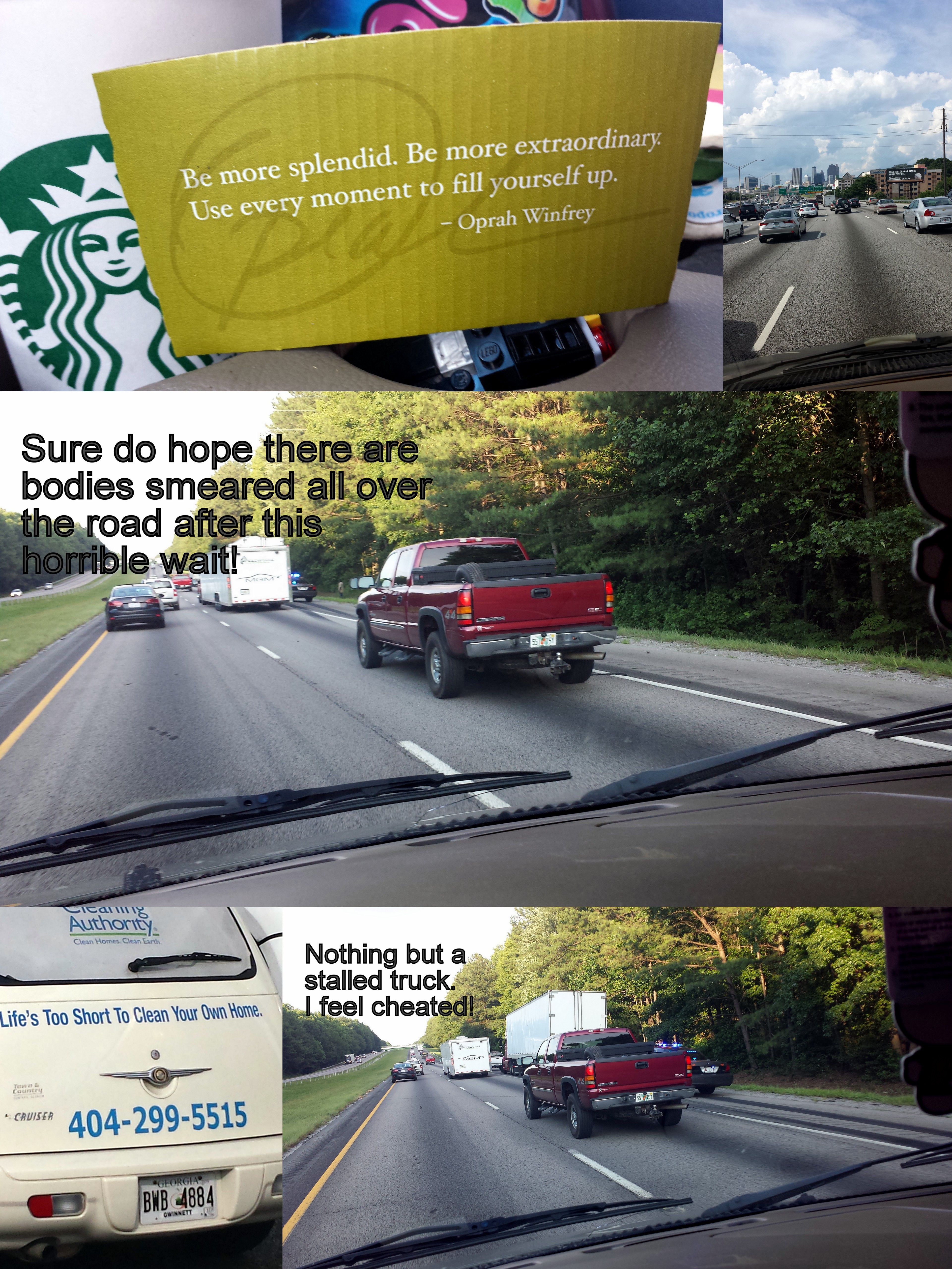 Then we got to Atlanta. Atlanta is beautiful, full of culture, clean, lovely, and the traffic hellacious. When we got to Atlanta, we sat in traffic. For 3 hours we sat in traffic. I even got some words of wisdom from Opera on my Starbucks cup about how to become the most selfish person imaginable! Thanks, Opera!