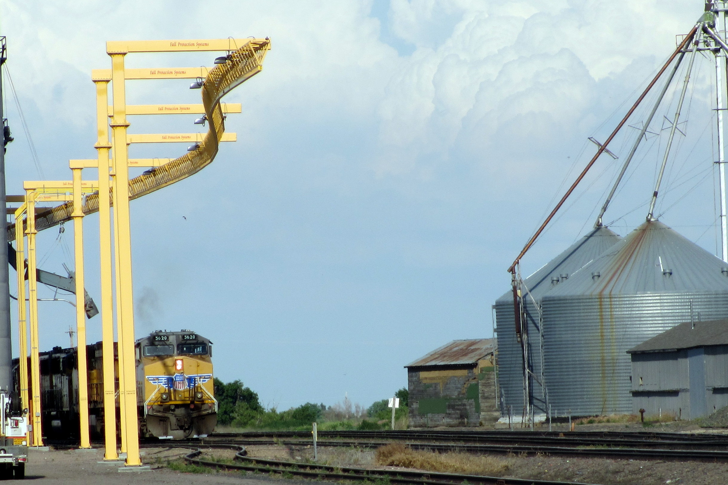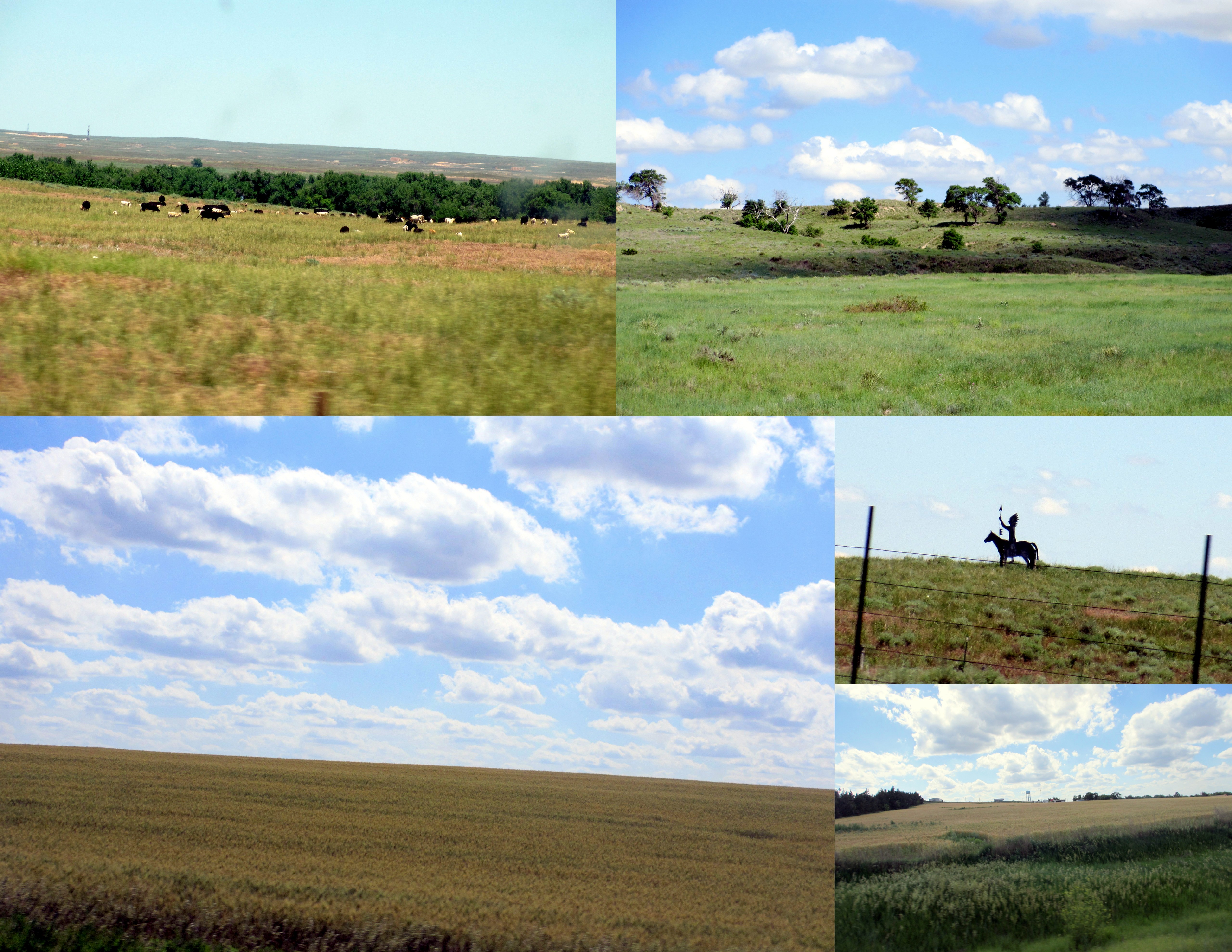 Kansas really is the Wild West as we think of it. We drove through many small towns, most crumbling, some kept vital, but all appeared unchanged, at least to the imaginative, since the late 1800*s. Part of the endless sameness on out road were the old, un-used wires, held up by glass and dried, bending, cracked, stripped tree trunks, on one side, and the glittering train track on the other. We had a tiny adventure at a railroad crossing when we got to wait for a loooonnnnggggg train to pass, from pulling engines at the beginning, to pushing engines at the end, it was a 5-minute wait watching coal car after coal car. American energy in transit!IMG_3271