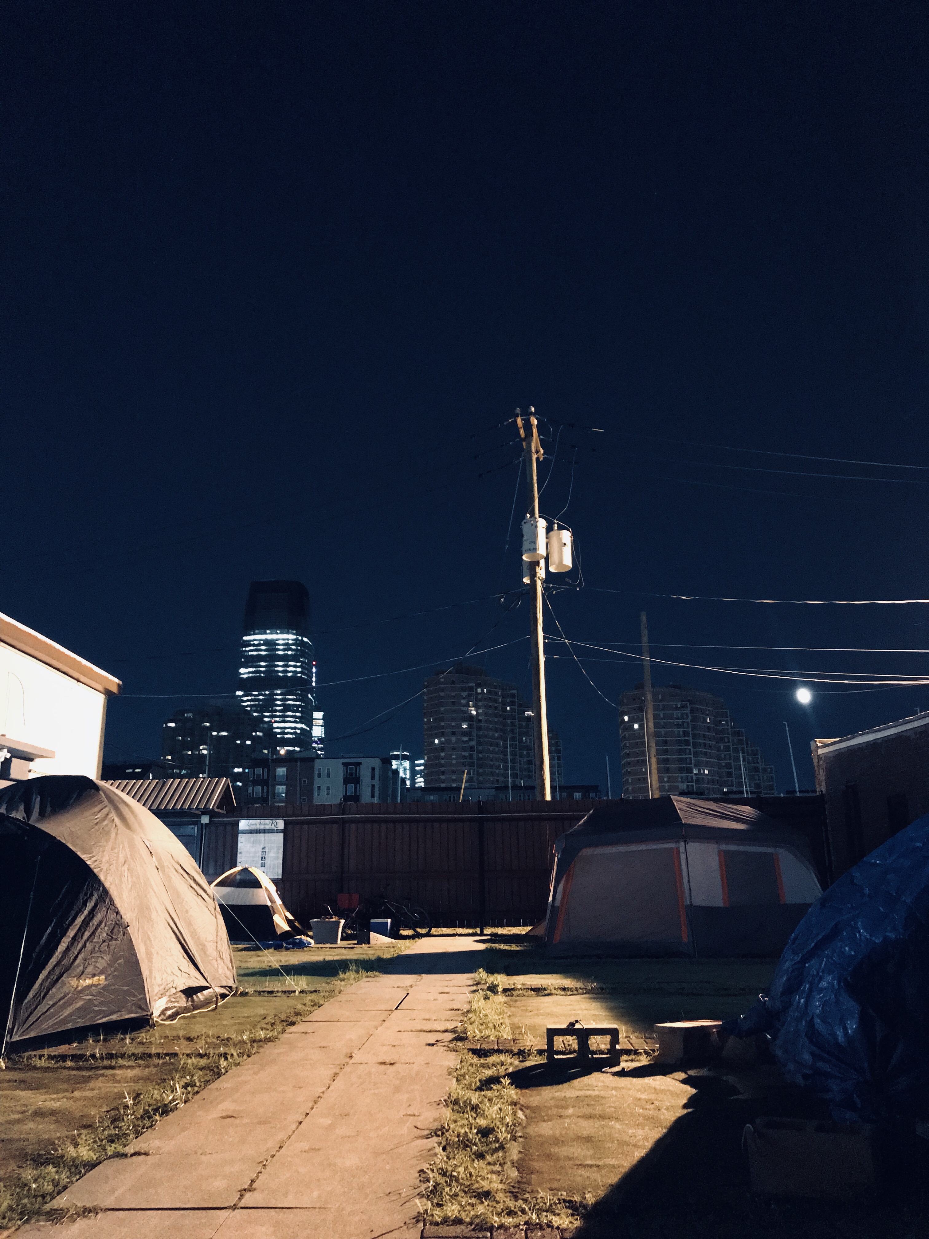 We are urban camping. Last night when we went to sleep, this is what we saw.