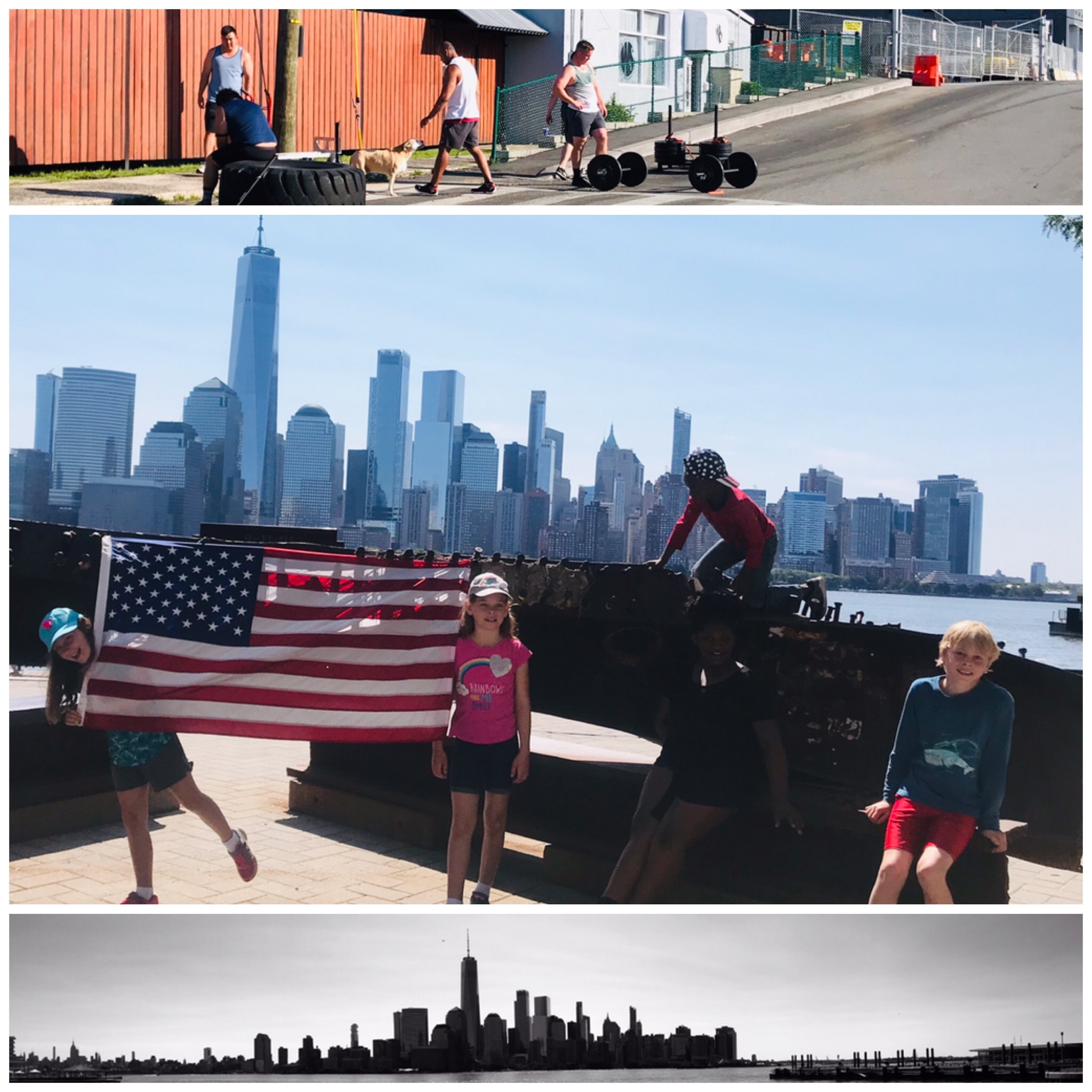 This morning when we woke up, it was to the sounds of ships, and street crossfit mere feet from the fence near our tent. The trainer was shouting, “You didn’t come here to get smaller, did you???” Jersey City is in the shadow of NYC, like the dorky little sister of a Hollywood star. It even has its own, small-but-meaningful 911 memorial.And this morning, we went to New York City! This is my favorite city. My childhood dreams of fancy twinkling lights, Broadway shows, sophisticated dresses, and nights at the Waldorf Astoria ordering delectable high tea room service all happened in New York City. The ghosts of Nick Carraway and Jordan and Daisey Buchanan drift and whisper in in all of the most fashionable places.