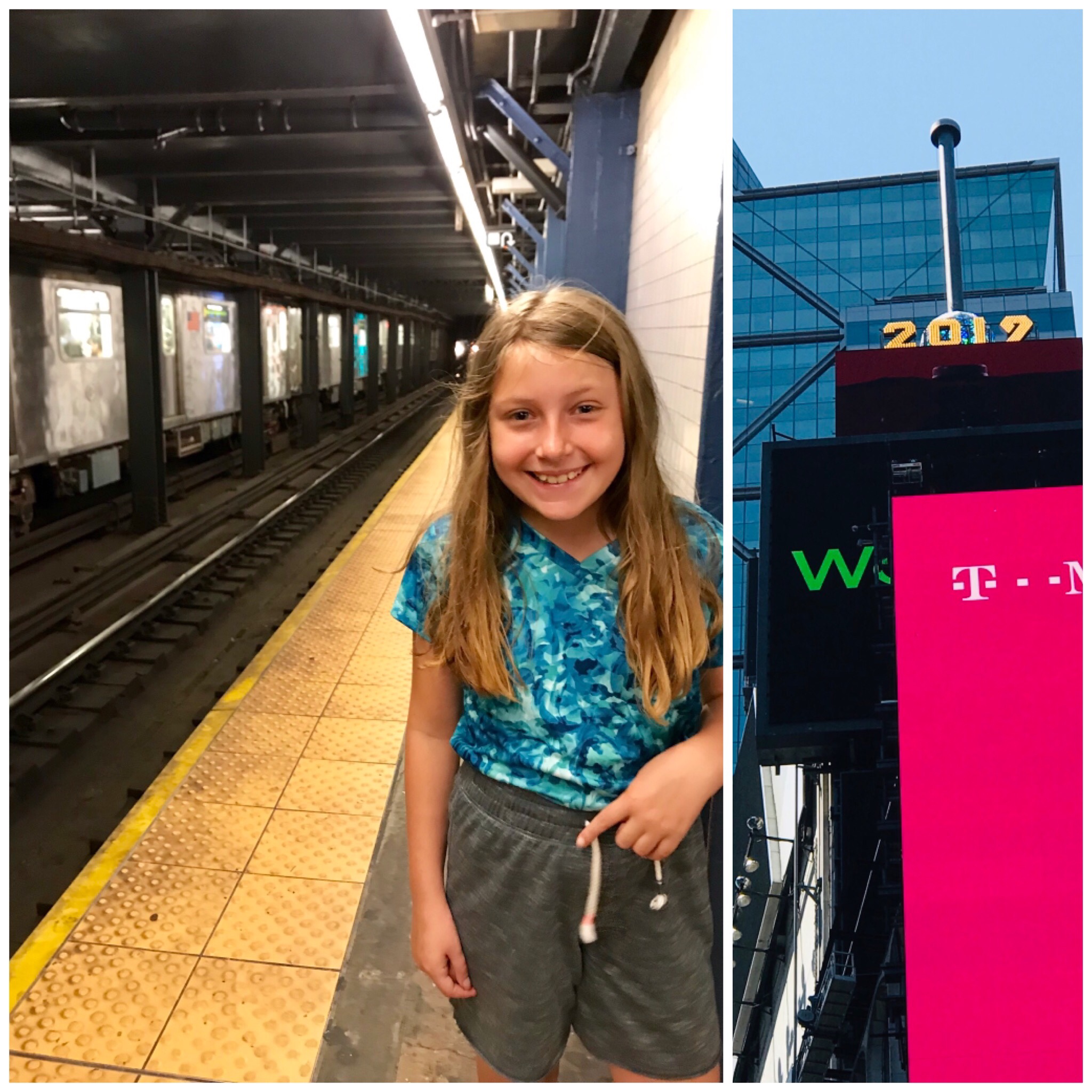 We had a punch list today. Somebody at the camp site had given us 5 unlimited subway tickets, so i was confident that we would get to itall!!First, World Trade Center monument. We were in awe. My kids have only a vague understanding of what 911 even is. To them, it is a horrible tragedy that happened way before they were born. And it had something to do with terrorists. Not wrong, but they see it like I might see WWII: purely academic. Something about all of those names on the eternal cascade and the guards so carefully keeping guest reverence in check got to them. Especially Judah. We didn’t go inside. I thought they would appreciate it better when a few years older. Miss L wanted to ride a subway right away, so we hopped on and took a ride to Times Square. There is retail overload in those few blocks, and a faux ball sitting where the real one will fall. So many lights and sounds. St. George just clung to Miss Magpie’s arm and sucked his lip. Poor little mountain kid.