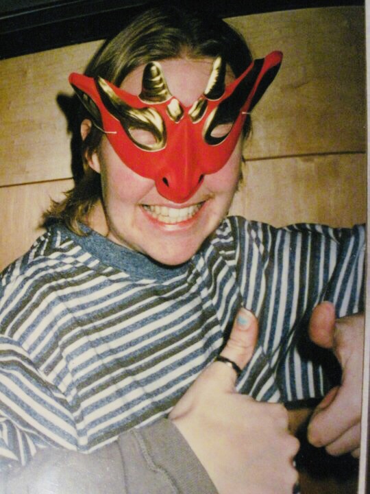 For the next 2 years, Alicia and I wreaked havoc on the school, or at least we did in our own minds. There was a particularly awkward professor, who helped me form a foreign film club, who was the target of much of our antics. One day we were politely sitting in his office as he brewed espresso on his Bunsen burner, and the next we were distracting him to steal his keys and make copies, and the next night we entered his office to fill it full of balloons, or tape eerie pictures to his office door. We showed up to these shenanigans masked.